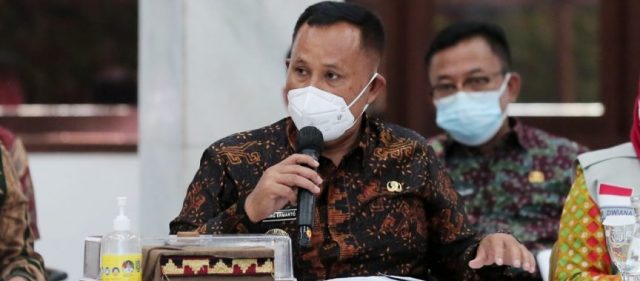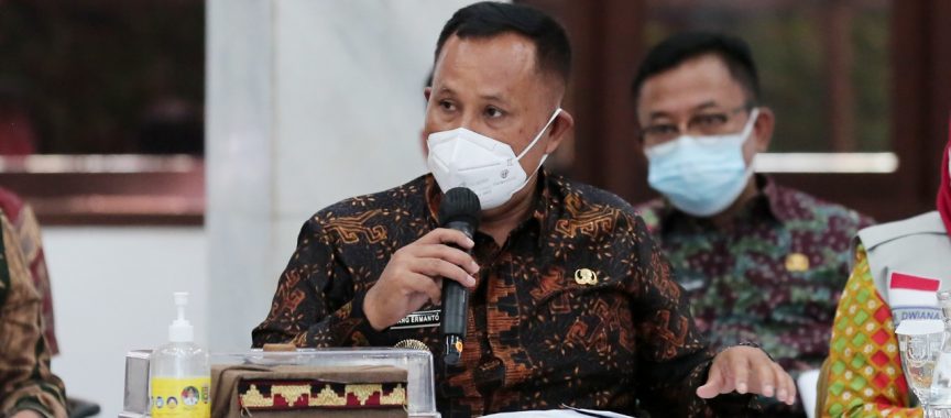 Lampunglive.com – BANDARLAMPUNG – Bupati Lampung Selatan H. Nanang Ermanto menghadiri rapat evaluasi pelaksanaan vaksinasi Covid-19 di kabupaten/kota se-Provinsi Lampung, di Mahan Agung, Bandar Lampung, Jumat (8/10/2021).