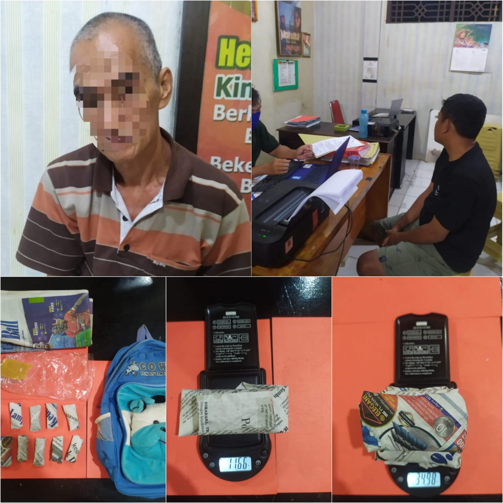Tidak berhenti disitu lanjut Aris, petugas kembali melakukan pengembangan dengan meringkus B (56) pada saat di Campur Sari dengan barang bukti 9 bungkus daun ganja kering dengan berat 34,98 gram.