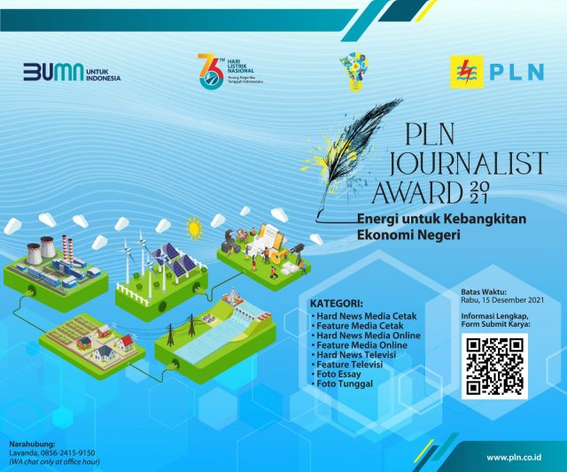 Mengangkat tema “Energi untuk Kebangkitan Ekonomi Negeri”, PLN Journalist Award berhadiah total Rp 400 juta. Pengumpulan karya paling lambat 15 Desember 2021