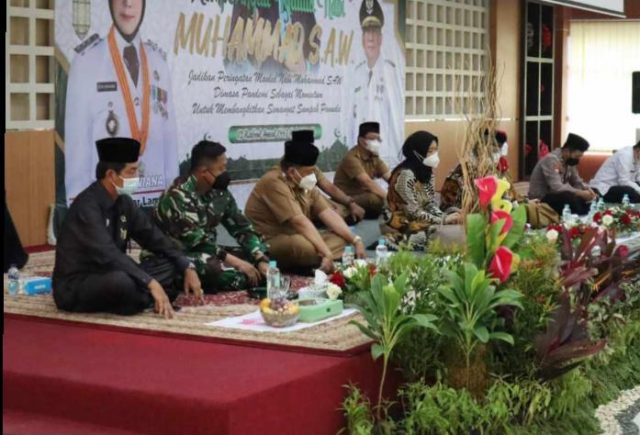 Bandar Lampung — Danramil 410-01/Panjang Kodim 0410/KBL Mayor Kav Perri Pujarama SH, hadiri acara peringatan Maulid Nabi Muhammad SAW 1443 H / 2021 M, yang digelar oleh Pemerintah Kota Bandar Lampung dengan menghadirkan ustad Ahmad Wijayanto bertempat di lantai IV Gedung Semergou, Selasa (2/11)