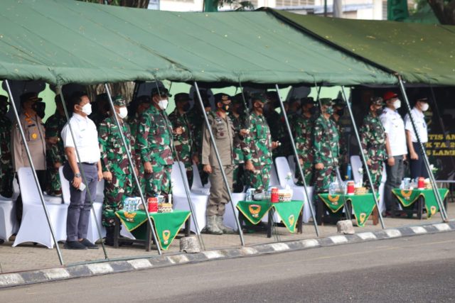 Lampunglive.com – Bandar Lampung, Kepala Staf Korem 043/Gatam Kolonel Inf Dendi Suryadi, S.H.,M.H, kamis (04/11/2021) Pkl 07.00 WIB menghadiri upacara penerimaan pasukan latihan Taktis Ancab BTP 13/Galuh Driver 1 Kostrad “Kartika Yuda 2021”, yang diikuti Mabrigif R 13 Yonif, Yonif 321/GT, Yonif 303, Yonif 323/SSM, Yonif 9/LLB, Divif 1 dan Yonpom, bertempat dilapangan Saburai Jl Majapahit Enggal Bandar Lampung.