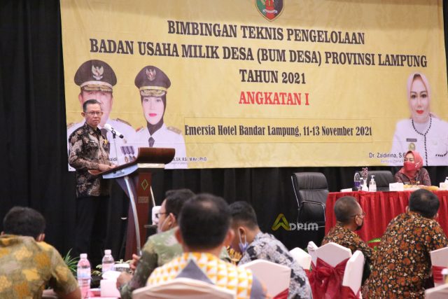 Lampunglive.com – BANDAR LAMPUNG —- Demi meningkatkan kualitas Badan Usaha Milik Desa (BUMDes), Pemerintah Provinsi Lampung mengadakan Bimbingan Teknis Pengelolaan BUMDes Provinsi Lampung tahun 2021 di Hotel Emersia, Jum’at (12/11/2021).