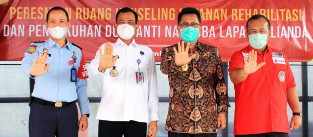 Plt Kakanwil Kemenkumham Provinsi Lampung, Iwan Santoso (baju merah) meresmikan ruang konseling layanan rehabilitasi narkoba di Lapas Kelas IIA Kalianda. | Diskominfo Lamsel