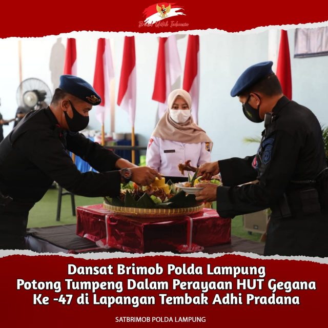 Lampunglive.com – Dalam rangka memperingati Hari Ulang Tahun Gegana Ke -47 Detasemen Gegana Satbrimob Polda Lampung melaksanakan giat Syukuran potong Tumpeng serta mengikuti Rangkaian Kegiatan Syukuran Gegana ke 47 Dari Mako Pasukan Gegana Brimob Kelapa Dua yang diselenggarakan secara Virtual ,Kamis 02/12/21