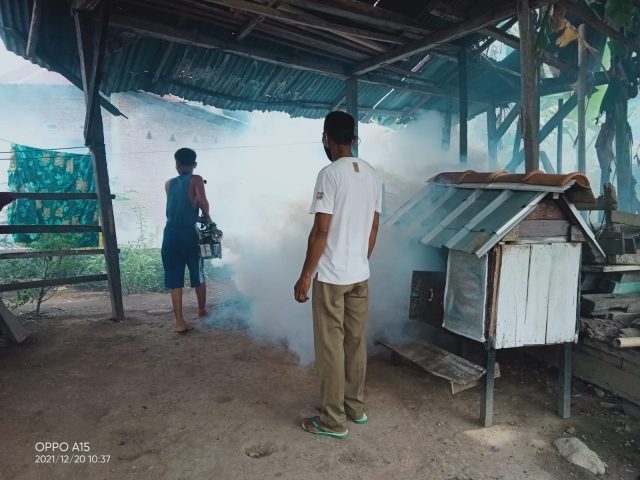 Kota Agung – Pemerintah Pekon Negara batin bersama Puskesmas Negara Batin Kecamatan Kotaagung Barat melaksanakan Fooging atau penyemprotan asap pada nyamuk Demam Berdarah (DBD) ke dua kalinya.