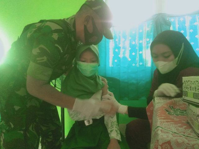Kegiatan Serbuan vaksinasi ini dipimpin langsung oleh Danramil 410-01/Panjang Mayor Kav Perri Pujarama.SH yang mengerahkan personel Babinsa, Pramuka Saka Wira Kartika dan mitra Tenaga Medis. Keterangan dari Sertu Jaya Lita selaku Babinsa Kel.Sukabumi yang mewakili Danramil menyampaikan “ Serbuan Vaksin ini terus berlanjut sesuai arahan Danramil dan dari Kodim bahwa untuk setiap Madrasah Ibtidaiyah Negeri maupun swasta yang ada di binaan kita untuk di Vaksin. Kali ini berada di wilayah binaan saya yaitu MI Masyarikul Anwar di Kel.Sukabumi.”
