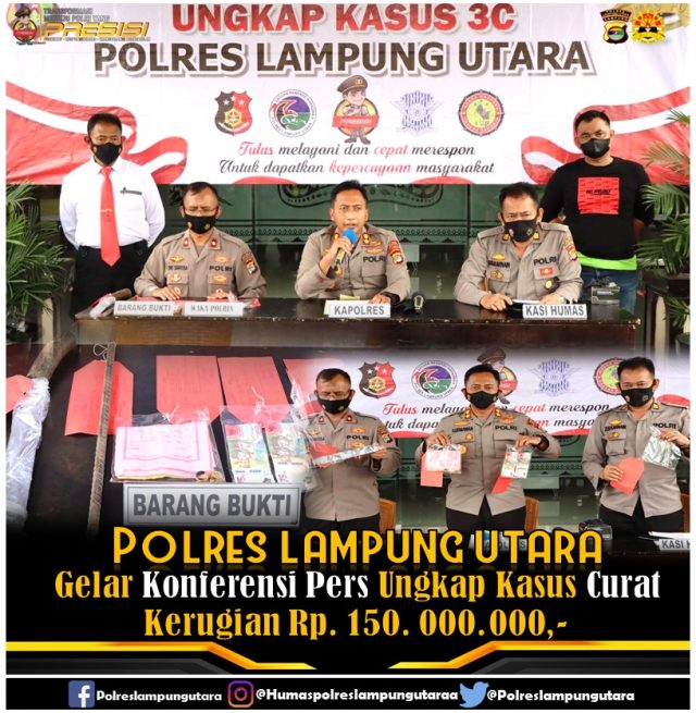 Hal ini di sampaikan Kapolres Lampung Utara AKBP Kurniawan Ismail S.H., S.I.K., M.I.K. saat menggelar konferensi pers pada Senin 31/1/2022 bertempat di koridor utama Mapolres setempat