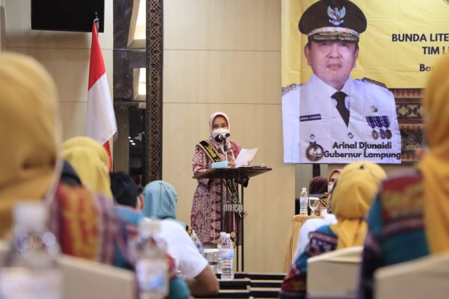 “Lakukan sinergi dengan Pemerintah Desa atau Kelurahan untuk mengupayakan minimal satu perpustakaan atau pojok baca di setiap desa. Gerakkan Dinas Pendidikan dan Sekolah untuk meningkatkan Gerakan Literasi Sekolah, serta terus lakukan kolaborasi dengan Penggiat dan Komunitas Literasi untuk meningkatkan budaya literasi masyarakat,” ujar Riana Sari. (Dinas Kominfotik Provinsi Lampung)