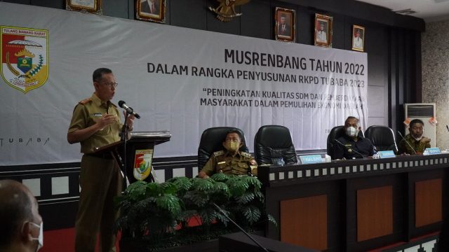 Tulang Bawang Barat — Gubernur Lampung diwakili oleh Sekretaris Daerah Provinsi Lampung, Fahrizal Darminto, membuka kegiatan Musyawarah Rencana Pembangunan (Musrenbang) dalam rangka Penyusunan Rencana Kerja Daerah (RKPD) Tahun 2023 Kabupaten Tulang Bawang Barat, di Ruang Rapat Bupati Kabupaten Tulang Bawang Barat, Selasa (15/03).