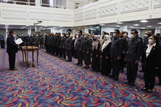 Bandar Lampung — Gubernur Arinal Djunaidi mengambil sumpah dan melantik 65 Pejabat di lingkungan Pemerintah Provinsi Lampung, di Balai Keratun, Kamis (16/6).