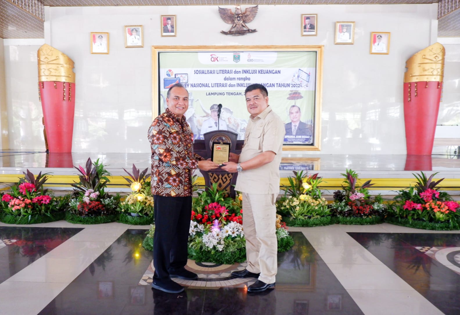Kabupaten Lampung Tengah, 28 Juni 2022. Kantor Otoritas Jasa Keuangan Provinsi Lampung, bekerja sama dengan Pemerintah Daerah Kabupaten Lampung Tengah, menyelenggarakan Sosialisasi Literasi dan Inklusi Keuangan dalam rangka Survey Nasional Literasi dan Inklusi Keuangan Tahun 2022, yang dihadiri Bupati Kabupaten Lampung Tengah, Bapak Hi. Musa Ahmad, S.Sos., Bunda Literasi Kabupaten Lampung Tengah, Ibu Mardiana Musa Ahmad, Ketua Dharma Wanita Persatuan Kabupaten Lampung Tengah, Ibu Yulita Nirlan dan Bunda Literasi Kecamatan/Kampung se-Kabupaten Lampung Tengah, Dinas dan Instansi terkait di Kabupaten Lampung Tengah, Kepala Bappeda, Bapak Drs. Rusmadi, M.M., Kepala BPKAD, Bapak Edrin Indra Putra, S.Sos., M.M., Selasa (28/6) bertempat di Gedung Nuwo Balak, Kabupaten Lampung Tengah.