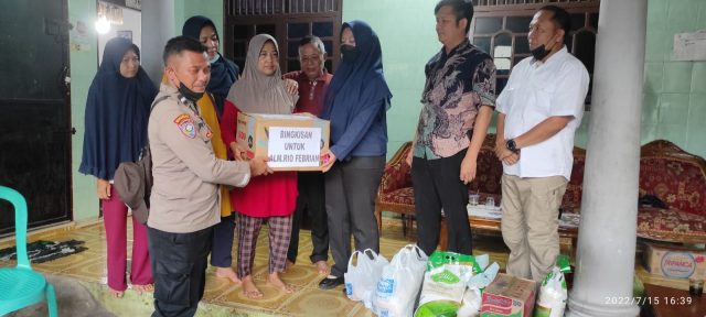 Di sela kunjungan rombongan personil Ditreskrimum Polda Lampung beserta Pers Polsek Tanjung karang Barat, memberikan tali asih dari Polda Lampung, berupa beberapa paket Sembako. (dn/penmas)