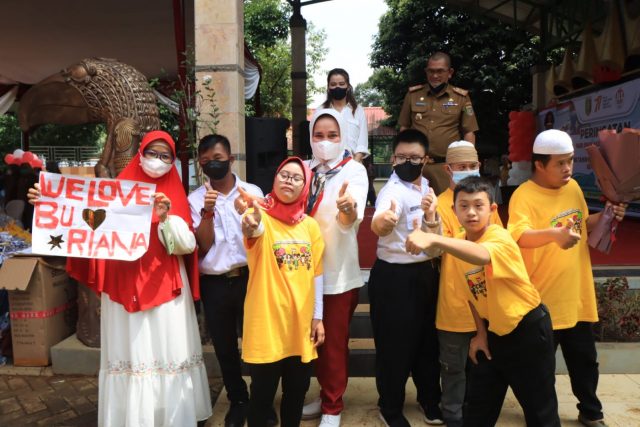 Bandar Lampung — Ketua Umum Persatuan Komunitas Disabilitas Provinsi Lampung (PKDL), Riana Sari Arinal, menghadiri acara Peringatan Hari Anak Nasional (HAN) Provinsi Lampung Tahun 2022 sekaligus memperingati HUT ke-77 Kemerdekaan RI, di Arena Pentas dan Taman Lalu Lintas Bumi Kedaton, Selasa (23/8/22).