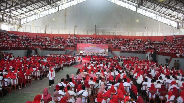 Bantuan yang langsung diserahkan secara simbolis oleh Bupati Lampung Selatan H. Nanang Ermanto tersebut dihadiri oleh 4.855 guru honor yang memenuhi seluruh tribun di GOR Way Handak.
