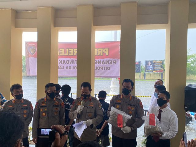 Hal tersebut di ungkapkan Direktur Polairud Kombes Pol. Sis Mulyono, didampingi Kabidhumas Polda Lampung Kombes Pol Zahwani Pandra Arsyad, Wadir Polairud AKBP Sulistiyono, Kasubdit Gakkum, AKBP Ruzwan Bahri, dan Kasubbid Penmas AKBP Rahmad Hidayat, saat melakukan Konferensi Pers di halaman Mako Dit Polairud, Senin (19/9/2022).