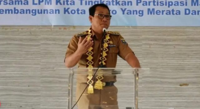 Walikota Metro Wahdi Siradjuddin, menghadari pelantikan pengurus Dewan Perwakilan Daerah (DPD) Lembaga Pemberdayaan Masyarakat (LPM) Kota Metro dan DPC LPM Kecamatan se-Kota Metro masa bhakti 2022-2027. Selasa (10/01/2023)