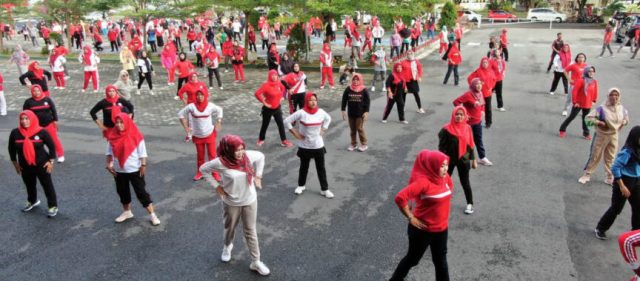 Salah satunya dengan dengan menggelar senam kesehatan jasmani secara rutin setiap hari Jumat pagi di halaman Gedung Olahraga (GOR) Way Handak Kalianda.
