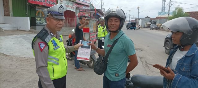 Bandar Lampung – Direktorat Lalu Lintas Polda Lampung Guna meningkatkan budaya tertib serta keselamatan dalam berlalu lintas, Ditlantas Polda Lampung pada Operasi keselamatan Krakatau 2023 memberikan edukasi dan himbauan kepada para pengguna jalan di wilayah pasar untung dan way kandis Bandar Lampung, Rabu (08/02/2023).