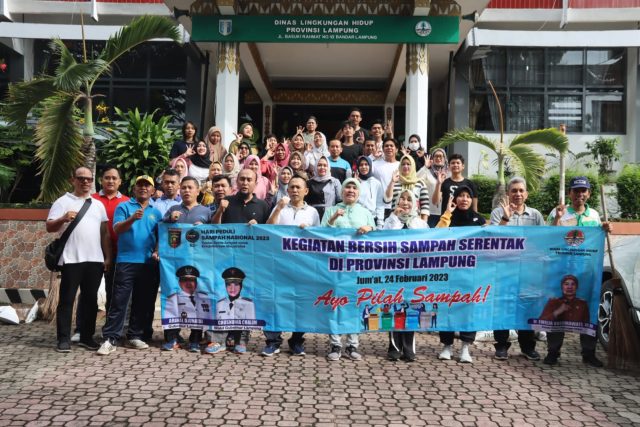 Bandar Lampung — Dalam rangka memperingati Hari Peduli Sampah Nasional, Dinas Lingkungan Hidup (DLH) menggelar Kegiatan Bersih Sampah di Lingkungan Kantor DLH Provinsi Lampung, Jumat (24/2/23).