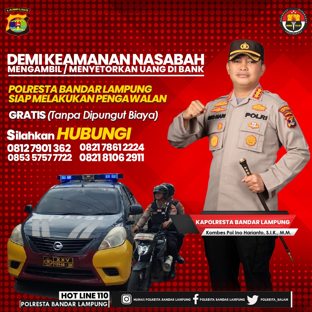 “Kami harapkan masyarakat khususnya yang berada di Kota Bandar Lampung dalam aktivitas mengambil dan mengirim uang melalui perbankan apalagi jumlahnya besar, minta pengawalan dari Kepolisian,” ujarnya Pada Rabu (5/4/2023).