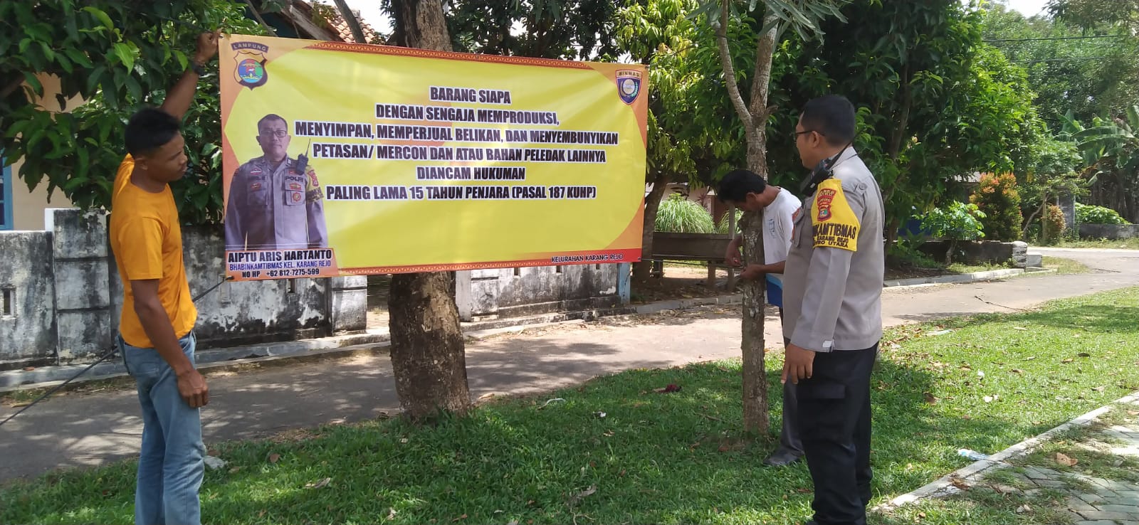 Polres Metro Polda Lampung, Peduli terhadap keselamatan dan kesehatan masyarakat pada umumnya dan khususnya diwilayah Kota Metro, Kapolres Metro AKBP Heri Sulistyo Nugroho S.IK, M.IK melalui bhabinkamtibmas Polsek jajaran melakukan pemasangan spanduk imbauan larangan membunyikan petasan.