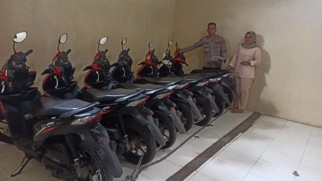 Selanjutnya, Aipda Hardiansyah mengatakan 10 unit kendaraan bermotor R2 merk Honda Beat tanpa nopol berwarna hitam telah diserahkan oleh Ka Unit PNM gedung Tataan kelompok 2 atas nama yulica.