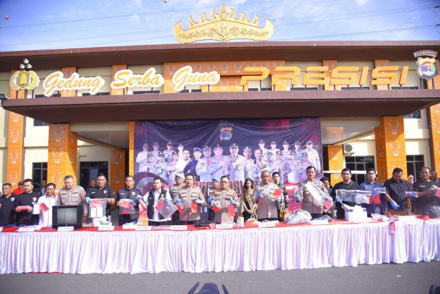 Dari hasil penangkapan tersebut, diamankan sejumlah barang bukti diantaranya berupa uang tunai Rp. 10.810.835 (Sepuluh Juta Delapan Ratus Sepuluh Ribu Delapan Ratus Tiga Puluh Lima Rupiah), 6 unit mobil, 80 unit sepeda motor, 36 pucuk senjata api, 18 butir amunisi peluru, dan 17 senjata tajam.