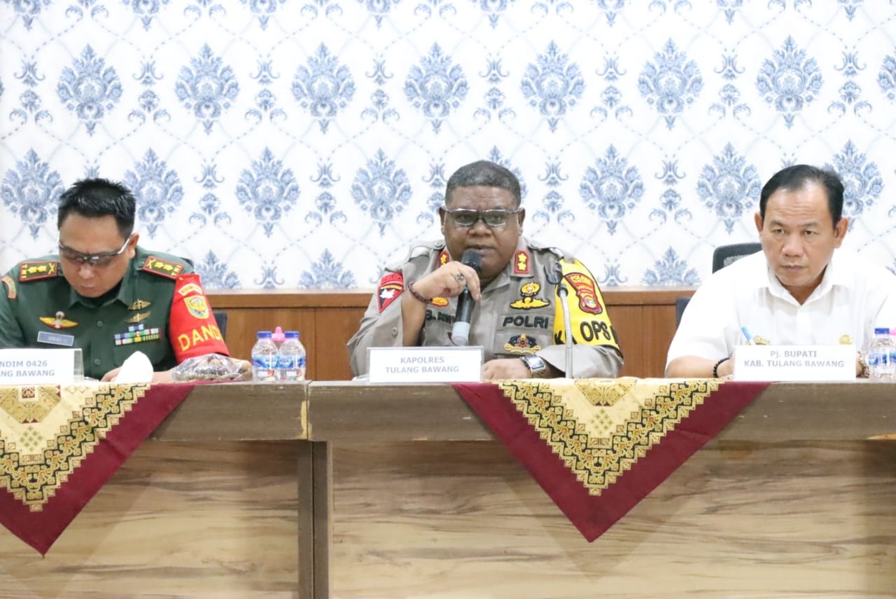 Rakor ini dipimpin langsung oleh Kapolres Tulang Bawang, AKBP Jibrael Bata Awi, SIK, didampingi Dandim 0426, Letkol Inf Triano Iqbal, SIP, M.Si, Pj. Bupati Tulang Bawang yang diwakili Sekda Tulang Bawang, Ir. Anthoni, MM, dan Ketua DPRD Tulang Bawang, Sopi’i, SH, di Aula Mapolres setempat, hari Rabu (07/06/2023), pukul 09.00 WIB s/d pukul 12.00 WIB.