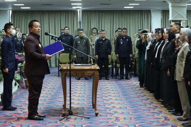 BANDARLAMPUNG—Gubernur Lampung Arinal Djunaidi melantik sekaligus mengambil sumpah jabatan Pejabat Fungsional di Lingkungan Pemerintah Provinsi Lampung, di Balai Keratun Lt.3 Kantor Gubernur Lampung, Selasa (20/06/2023).
