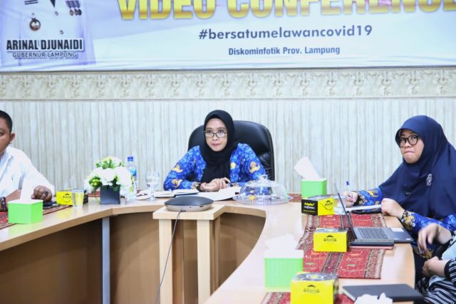 Bandar Lampung — Pemerintah Provinsi Lampung diwakili oleh Kepala Dinas Perindustrian dan Perdagangan Provinsi Lampung, Elvira Umihanni didampingi sejumlah perwakilan Perangkat Daerah, mengikuti Rapat Koordinasi Pengendalian Inflasi Daerah secara _virtual_ yang dipimpin oleh Menteri Dalam Negeri, Tito Karnavian, di Ruang Command Center Lt. II Dinas Kominfotik Provinsi Lampung, Senin (17/07/2023).