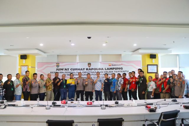 Bertempat di PT. Bukit Asam Persero tarahan Bandar Lampung, Polda Lampung melaksanakan Jum’at Curhat bersama pengelola Obvitnas dan Objek tertentu di wilayah hukum Polda Lampung, Jum’at (21/7/23)
