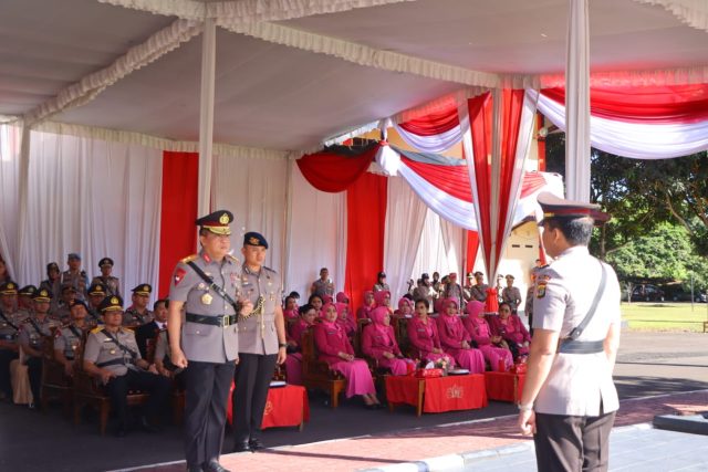 Upacara dihadiri oleh Waka Polda Lampung Brigjen Pol Umar Effendi S.I.K.M.Si., Irwasda Polda Lampung Brigjen Pol Sustri Bagus dan Pejabat Utama Polda Lampung.