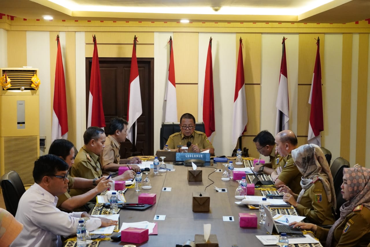 Bandar Lampung — Gubernur Lampung, Arinal Djunaidi memimpin Rapat Penanggulangan Dampak Kekeringan akibat El Nino, bertempat di Ruang Sakai Sambayan, Senin (04/09/2023).