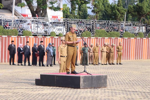 Bandar Lampung —  Sekretaris Daerah Provinsi Lampung, Fahrizal Darminto menjadi Inspektur upacara pada Upacara Bulanan bersama Forkopimda Provinsi Lampung, di Lapangan Korpri Komplek Kantor Gubernur Lampung, Senin (04/09/2023).