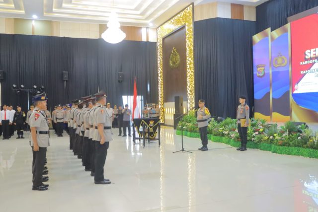 Lampung Selatan – Kapolda Lampung Irjen Pol Helmy Santika pimpin acara Serah Terima Jabatan (Sertijab) Karo Ops, Karo SDM, Karo Log, Dansat Brimob, Dir Polair, Dir Pam Obvit, Kapolresta Bandar Lampung, Kapolres Tulang Bawang, Kapolres Tanggamus, pada Kamis (04/1/2024).