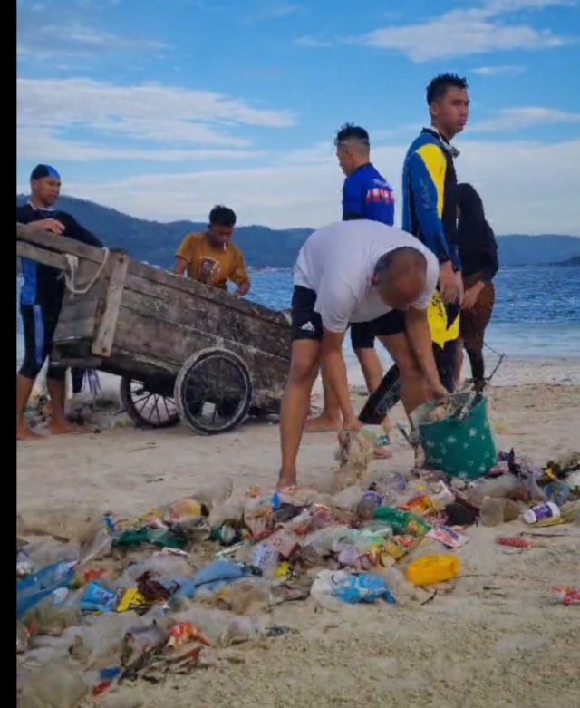 “Secara terus menerus, kami menghimbau agar setiap wisatawan yang ke Pantai atau menyeberangi Pulau jangan membuang sampah sembarangan karena ini akan merusak ekosistem laut. Sampah sampah yang dibuang di pantai akan terbawa arus hingga ada yang terbawa ke dasar laut. Mari kita jaga keindahan wisata kita dengan menjaga kebersihannya,” ungkap Darmawan.