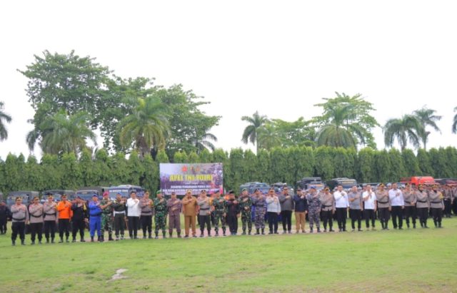 LAMPUNG – Bertempat di Lapangan Korpri Pemprov Lampung, Polda Lampung menggelar Apel TNI – Polri dalam rangka kesiapan pemilu 2024 dan siaga bencana di Provinsi Lampung, Selada (6/02/2024).