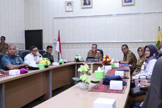Bandar Lampung — Sekretaris Daerah Provinsi Lampung Fahrizal Darminto mengikuti Rapat Koordinasi Pengendalian Inflasi Daerah secara virtual, di Ruang Command Center Lt. II Dinas Kominfotik Provinsi Lampung, Senin (19/2/2024).