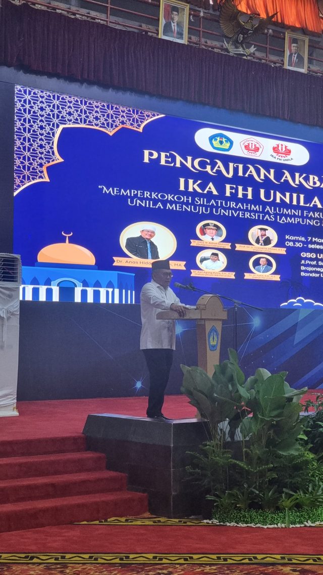 Lampunglive.com – Pada hari Kamis, 07 Maret 2024 bertempat di Gedung Serba Guna Universitas Lampung, Ikatan Keluarga Alumni Fakultas Hukum Universitas Lampung menyelenggarakan Pengajian Akbar dalam rangka menyambut Bulan Suci Ramadhan 1445 H dan Bakti Sosial dengan tema “Memperkokoh Silaturahmi Alumni Fakultas Hukum Universitas Lampung Menuju Universitas Lampung Berjaya”.