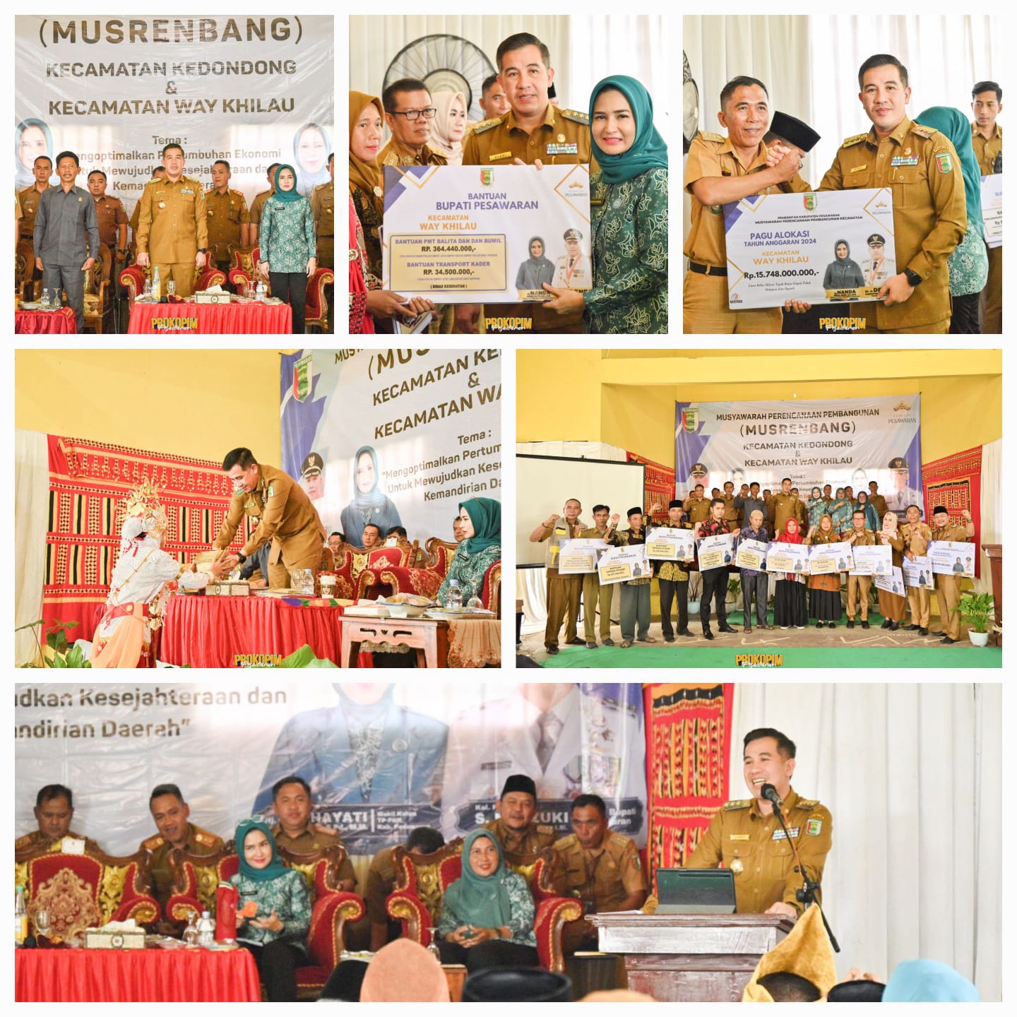Demikian dikatakan Bupati Pesawaran Dendi Ramadhona saat memimpin Musyawarah Perencanaan Pembangunan (Musrenbang) di Kecamatan Kedondong dan Kecamatan Way Khilau di Balai Adat Kedondong pada Senin (04/03/24).
