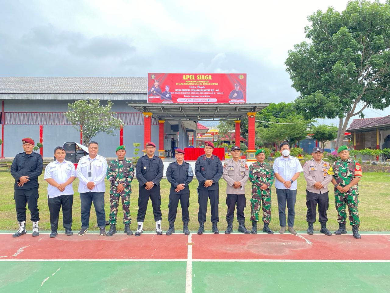 Inspektur/Pembina Apel Siaga 3+1 Berantas Narkoba di Lapas Narkotika Kelas IIA Bandar Lampung dihadiri langsung Kepala Divisi Pemasyarakatan Kanwil Kemenkumham Lampung Kusnali.