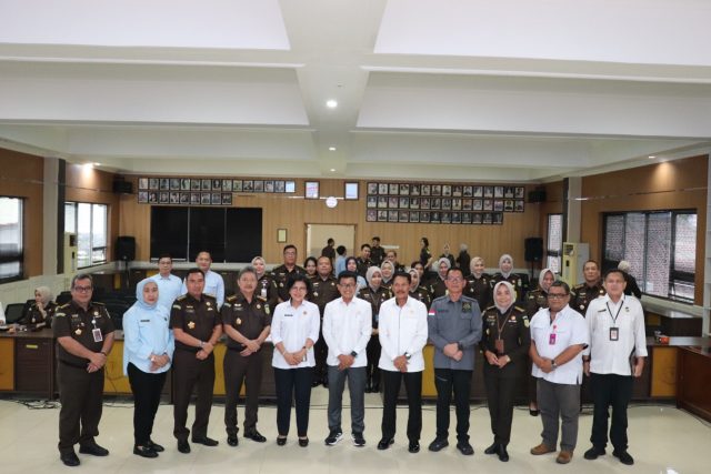Plt. Kajati Lampung Yuni Daru Winarsih, S.H., M.Hum., didampingi Para Asisten, Kabag TU dan Para Koordinator beserta seluruh pegawai dilingkungan Kejati Lampung menyambut baik kunjungan kerja Komisi Kejaksaan.