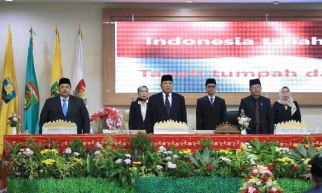 Dewan Perwakilan Rakyat Daerah (DPRD) Provinsi Lampung gelar Rapat Paripurna Istimewa dalam rangka penyerahan Laporan Hasil Pemeriksaan (LHP) BPK Perwakilan Provinsi Lampung atas Laporan Keuangan Pemerintah Daerah (LKPD) Provinsi Lampung Tahun 2023 di Ruang Sidang DPRD Provinsi Lampung, Rabu (8/5/2024).