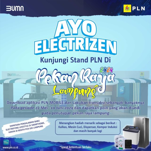 General Manager PT PLN (Persero) UID Lampung, Sugeng Widodo mengungkapkan pada partisipasi PLN memeriahkan PRL 2024 ini booth PLN UID Lampung akan mengusung Tema Smart Home Powered by PLN. Pekan Raya Lampung (PRL) sendiri, merupakan event tahunan yang dirancang untuk mempromosikan kreativitas, inovasi, dan potensi pembangunan Lampung dalam konteks kemajuan nasional.