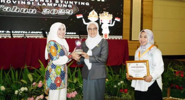 Penghargaan itu diterima Ketua Tim Penggerak PKK Kabupaten Lampung Selatan Hj. Winarni Nanang Ermanto selaku Ketua Tim Percepatan Penurunan Stunting (TPPS) dalam acara Penilaian Kinerja Aksi Konvergensi Stunting Provinsi Lampung yang digelar di Ballroom Swiss-Belhotel, Bandar Lampung, Rabu (22/5/2024).