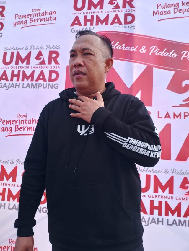 Bandar Lampung – Umar Ahmad mendeklarasikan diri sebagai bakal calon (Bacagub) Lampung di tugu Adipura Kota Bandar Lampung, Sabtu (01/06/2024) pagi.