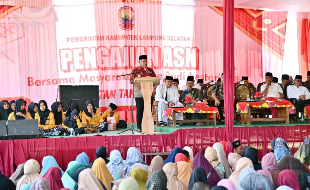 Tanjung Bintang – Pemerintah Kabupaten (Pemkab) Lampung Selatan mengadakan pengajian Aparatur Sipil Negara (ASN) bersama dengan masyarakat yang digelar areal Masjid Baiturrahmah, Desa Budi Lestari, Kecamatan Tanjung Bintang, Jumat (20/9/2024).