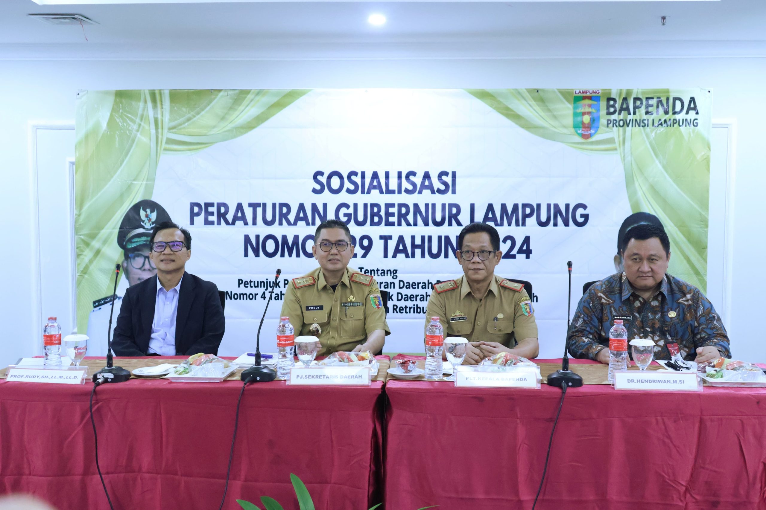 Atas nama Pemerintah Provinsi Lampung, Pj. Sekdaprov mengapresiasi dan menyambut baik diselenggarakannya Sosialisasi Peraturan Gubernur ini, sebagai wahana untuk meningkatkan koordinasi dan sinergitas dalam upaya optimalisasi Pendapatan Dari Sektor retribusi daerah di Provinsi Lampung, sehingga dapat tepat sasaran dan tepat hukum.