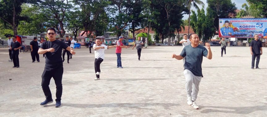 Kalianda – Suasana senam pagi yang berlangsung di Lapangan Korpri, Pemkab Lampung Selatan, Jumat, 29 November 2024, terasa berbeda.