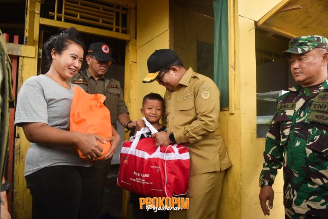 Setelah sebelumnya ditinjau Bupati Pesawaran Dendi Ramadhona, Pj. Gubernur Samsudin kali ini hadir bersama Balai Nasional Penanggulangan Bencana (BNPB) pusat, BPBD Provinsi, serta jajaran perangkat daerah Pemerintah Kabupaten Pesawaran. Pada kegiatan itu Sekda bersama Pj Gubernur turut memberikan bantuan berupa makanan siap saji, selimut, sembako, kasur dan obat-obatan kepada warga yang terdampak banjir.